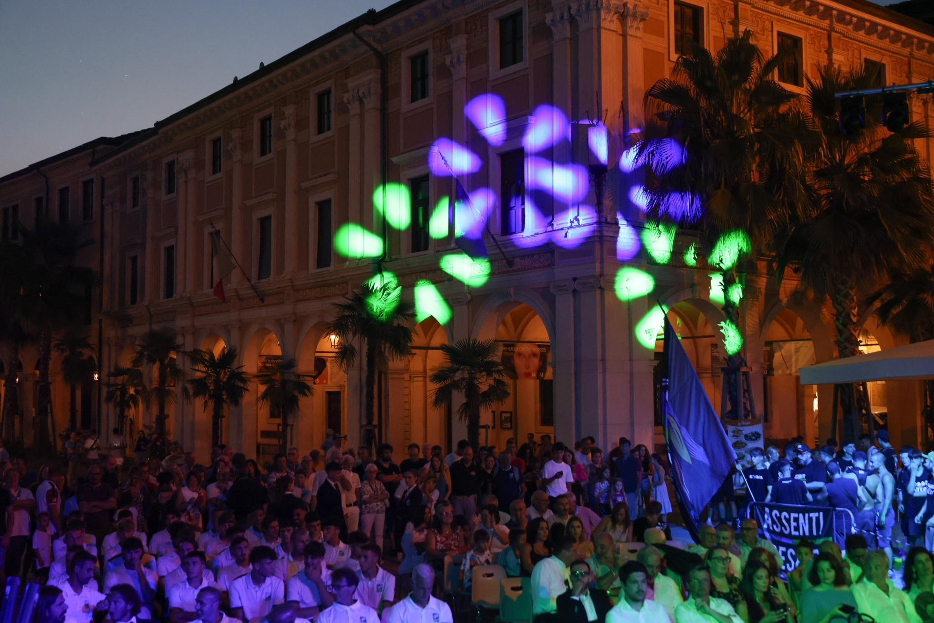 Una serata bordata di scintille. Emozioni e festa. Ripartenza, epifania istituzionale, abbracci e cori.