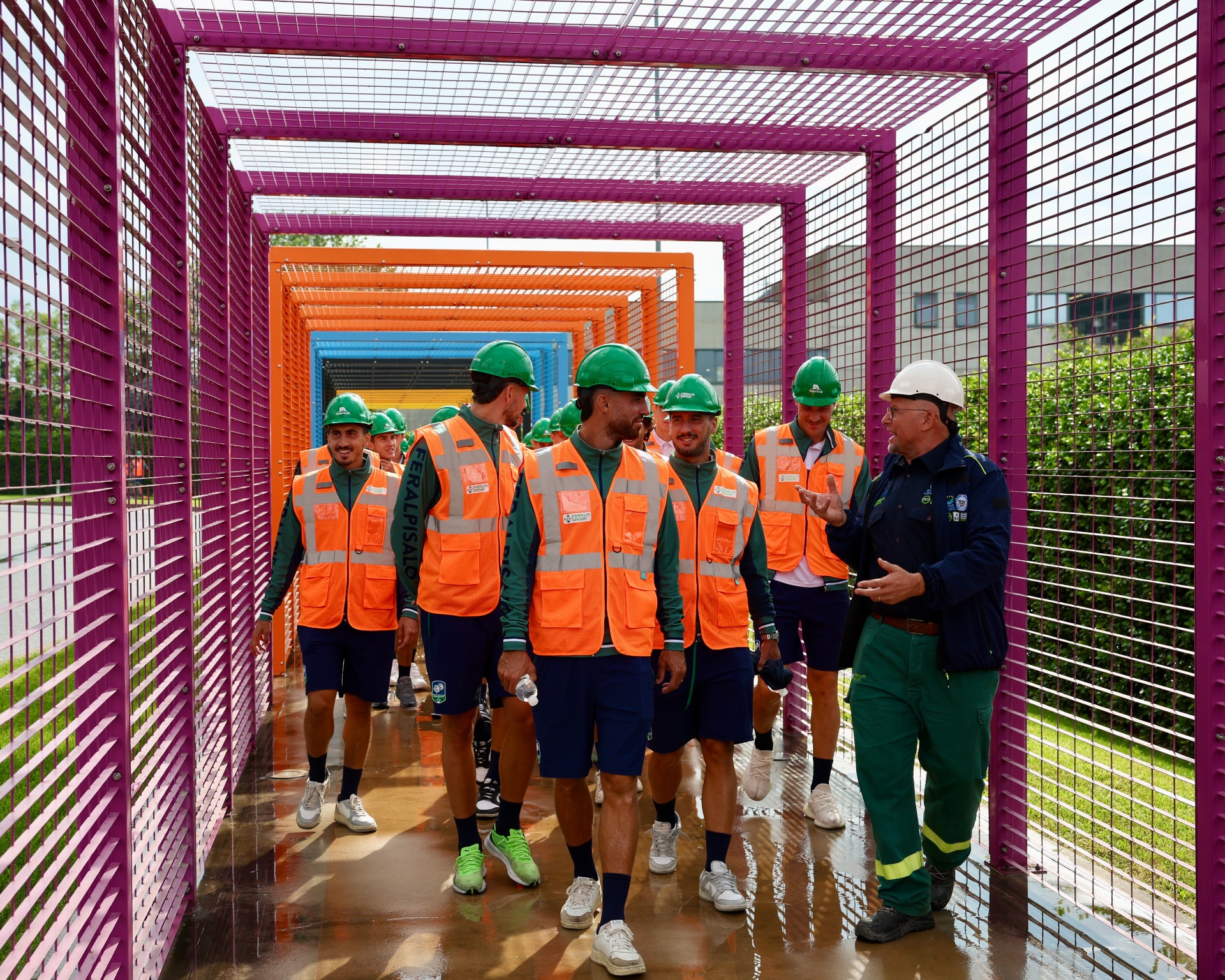 Successivamente, la squadra ha visitato il centro operativo dello stabilimento e ha pranzato nella mensa aziendale insieme agli altri dipendenti, vivendo un’esperienza immersiva nello spirito di Feralpi, fatto di passione, dedizione, impegno e rispetto per le persone e l'ambiente.